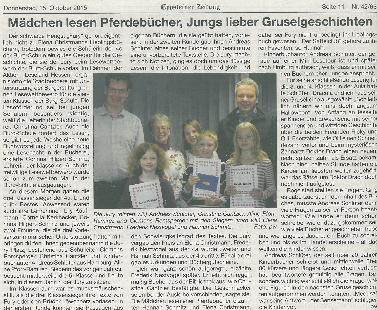 Sowohl die Schulbücherei der Burg-Schule als auch die Schulbücherei der Freiherr-vom-Stein-Schule wurden bei ihren Anträgen mehrfach von der Bürgerstiftung unterstützt. Sie ermöglichte beiden Büchereien die Erfüllung besonderer Leserwünsche, z.B. die Anschaffung neuer Ausgaben der beliebten „Was ist was“-Sachbücher, Klassensätze von Jugendromanen für die Leseförderung, Hardcover-Comicbände und besondere Lexika.